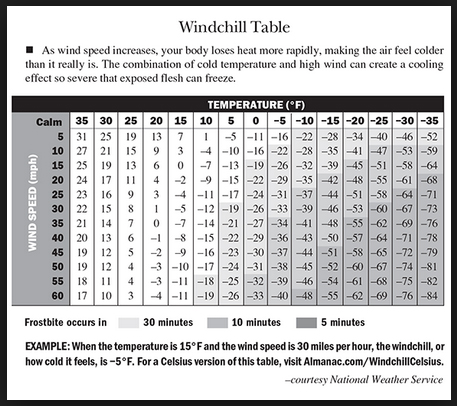 two awards here followed by a refresher on Wind Chill values. Also
