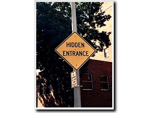 "Caution: Handicapped man eating crocodile at bottom of hill"